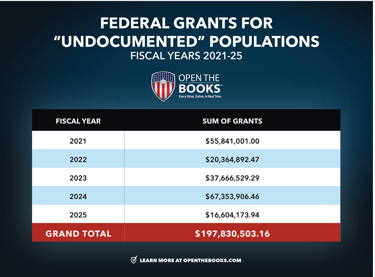 Because this week, government watchdog Open The Books dropped a 6-alarm report that rips the mask off the Left’s latest con. The truth: at least $200 million in direct federal grants have gone to health care programs for illegal immigrants — and that’s just scratching the surface.