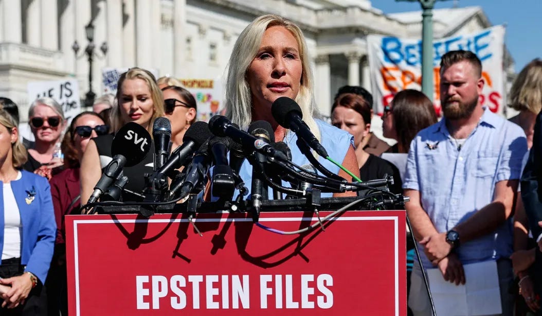 P.S. Trump giving the green light on the Epstein files? That was a dare to the Swamp. Let’s see who flinches first. MTG’s flip, Schumer’s scramble, Harvard elites running for cover — this isn’t cleanup. It’s collapse. What do you think the files will show? Who do you think they’re trying to protect? Hit reply — I want to hear it.