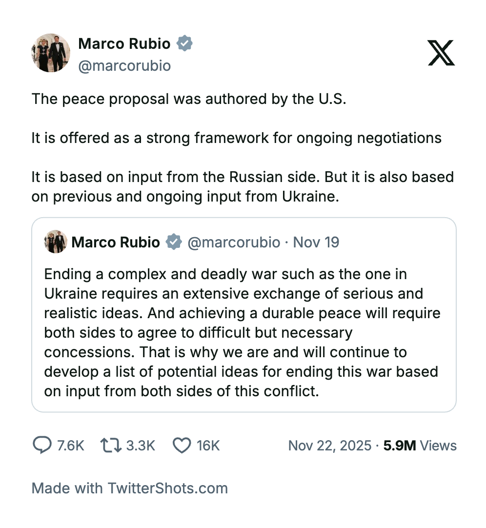 Rubio’s running interference to give Europe breathing room — while Team Trump presses the deal behind closed doors in Geneva. Envoy Steve Witkoff, Army Secretary Driscoll, and Rubio himself are in the room. Not watching. Negotiating. Ukraine’s on-site. So is half of Europe.