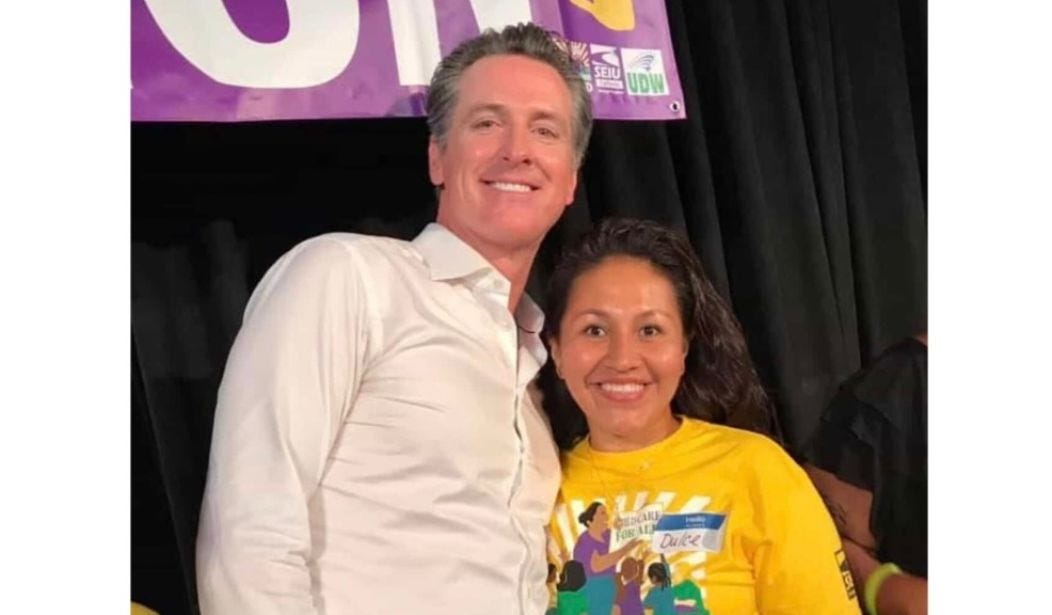His wife, Dulce Villagomez, runs a licensed day care from the same home — and is an SEIU activist who posed proudly with Gov. Gavin Newsom in 2015.