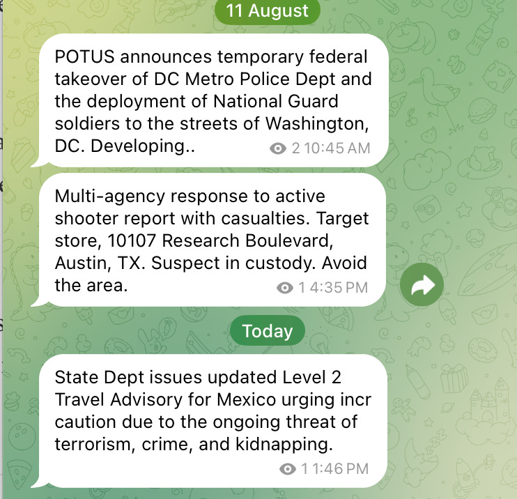— 🚨 Real-time alerts (shootings, weather, major events)